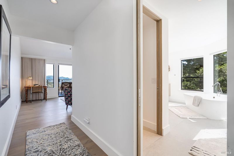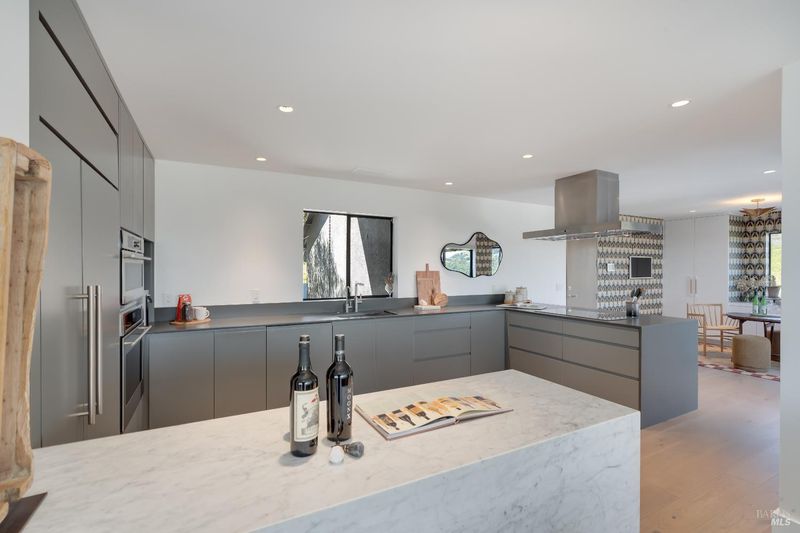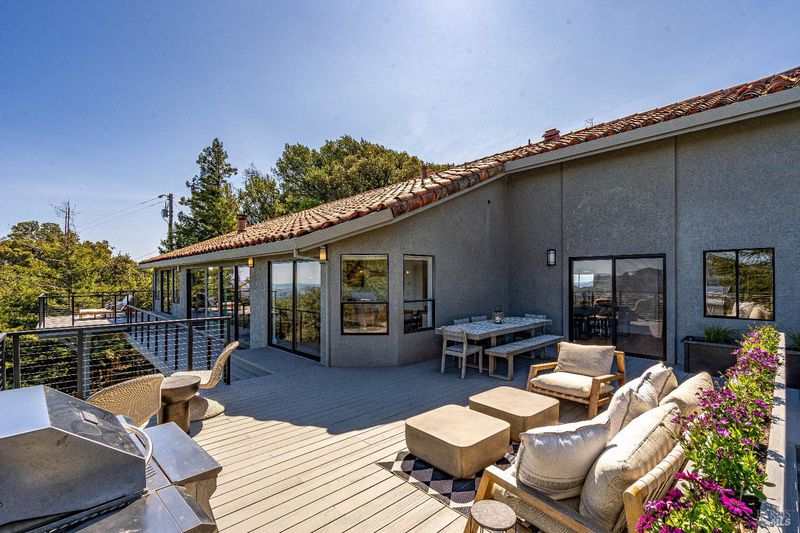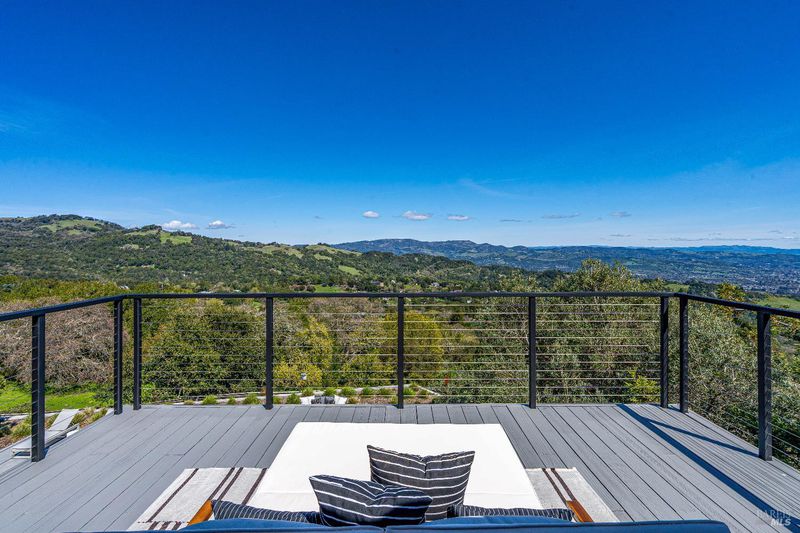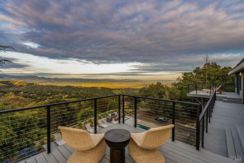 Perched on 5 acres atop Sonoma Valley's rolling hills, less than an hour from SF, this 4-bed, 3.5-bath home is a private retreat. This custom home has views from every room and showcases thoughtful details with new wide-plank oak floors, floor-to-ceiling windows, custom built-ins & new A/C. The finishes by Goldenbird Design reflect the changing hues of the Sonoma sky. The expansive great room has soaring ceilings and a stunning oceanic limewash accent wall and flows out to two levels of decks. The chef's kitchen has professional appliances, custom cabinetry & an eat-up bar plus a breakfast area. The dining area flows onto an outdoor deck with a BBQ & views. The primary bedroom offers calming earth-toned neutrals, a walk-in closet and a spa-like bath with a soaking tub, walk-in shower, towel warmer & a private deck w/ down-valley views. A private ensuite for guests, laundry room & powder room complete this level. Downstairs w/ great room, 2 guest rooms, a bath & storagge. Water filtration. 3-car garage pkg + much more. The landscaped yard features a heated pool & ample lounge space. Diamond A has a great community & offers walking/horse trails, rec center with events, pickleball, tennis, pool, park, + more! 10 mins from Sonoma Square & wineries.