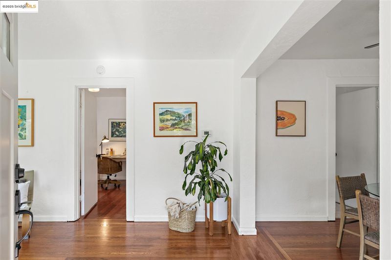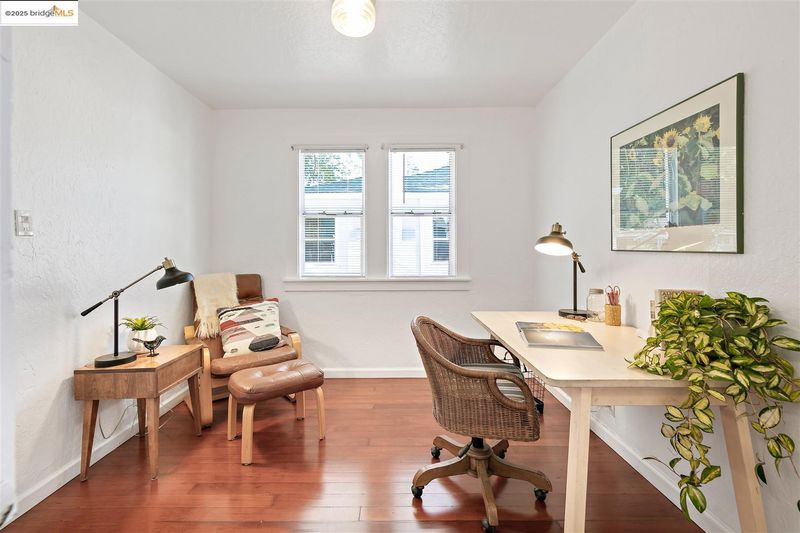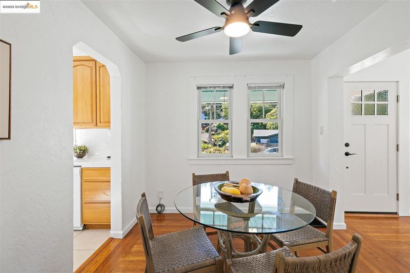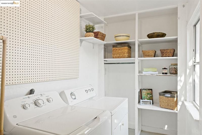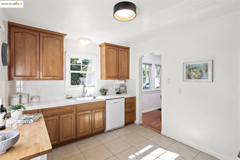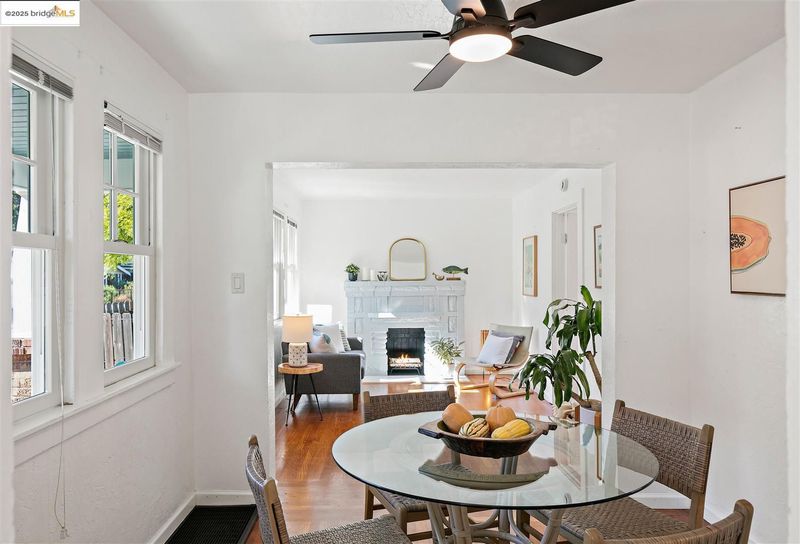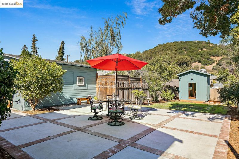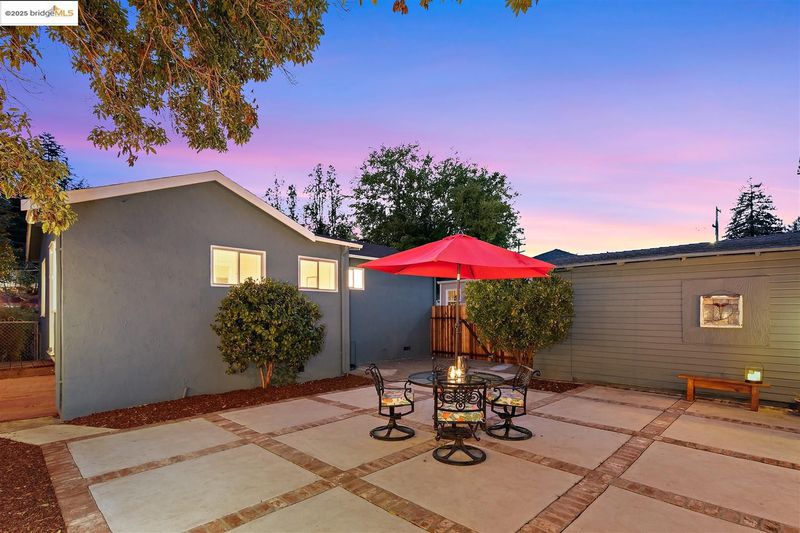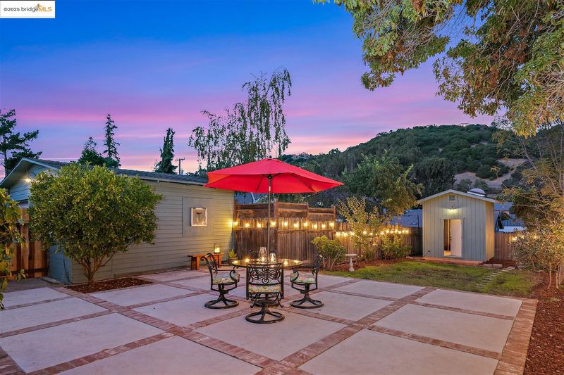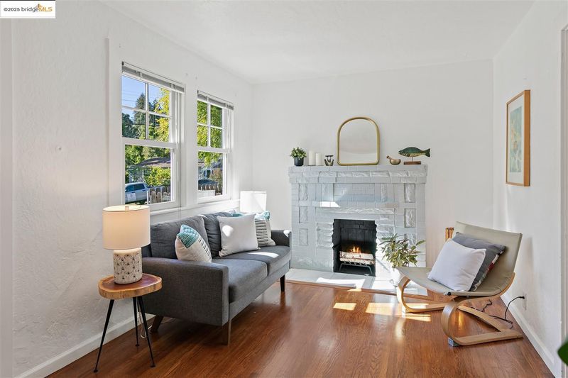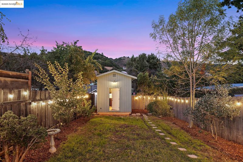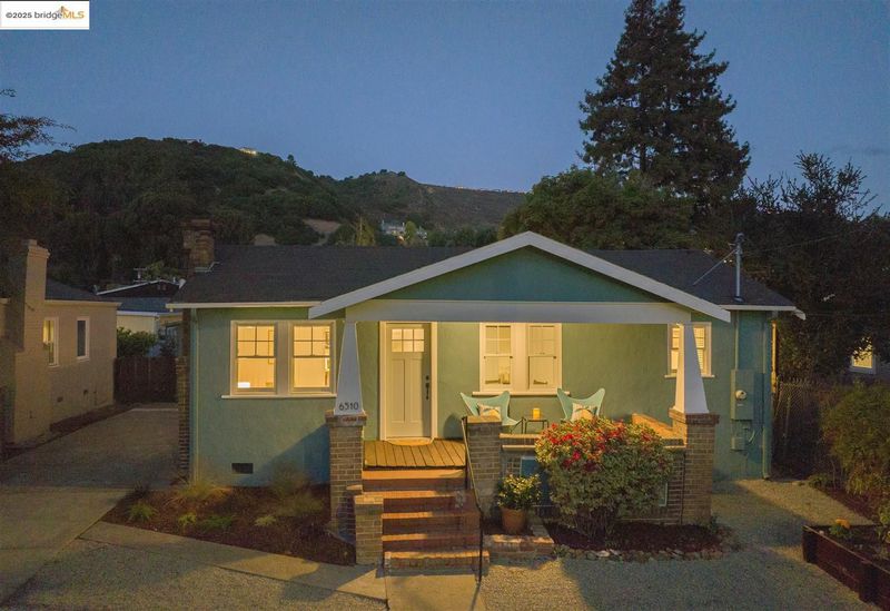 This charming Craftsman bungalow sits on a large, level lot in Millsmont overlooking the Oakland Hills. The west-facing front porch is the perfect spot to relax and catch the sunset, overlooking a freshly landscaped yard with a raised garden bed. Inside, the living and dining rooms feature beautiful hardwood floors and get lots of natural light. The kitchen has been refreshed with a new refrigerator and stove, modern cabinets, and tile flooring. The primary bedroom has brand-new carpet. There is also a separate laundry room with extra storage, just off the kitchen. The yard is fully fenced front and back, with a long driveway leading to a detached garage with a new roll-up door. Out back, you’ll find a sunny, newly landscaped patio made of brick and concrete. The grassy yard is lined with mature plants, and there's a detached bonus structure with tall ceilings, a skylight, and new flooring—perfect for an art studio or workout space. Sewer lateral is compliant, and the home includes upgraded 200-amp electrical service. You're just minutes from Hwy 580 and 13, Northeastern University, the Oakland Zoo, and Sequoyah Country Club. A great starter home with room to grow, this Millsmont gem is ready for its next chapter.