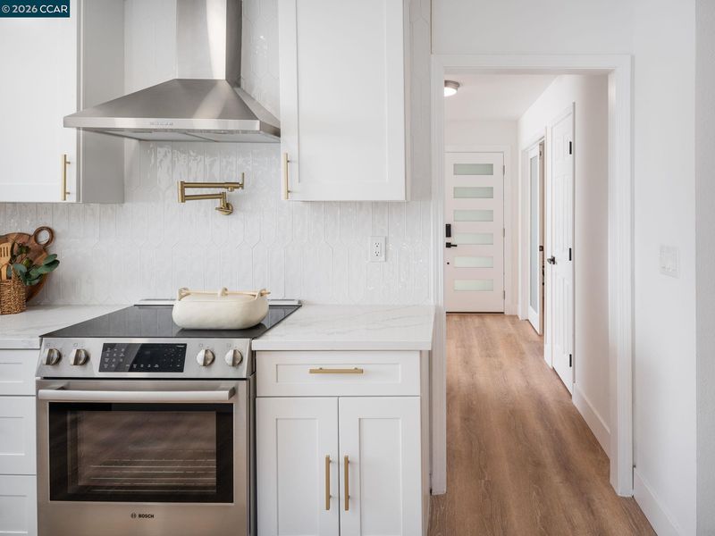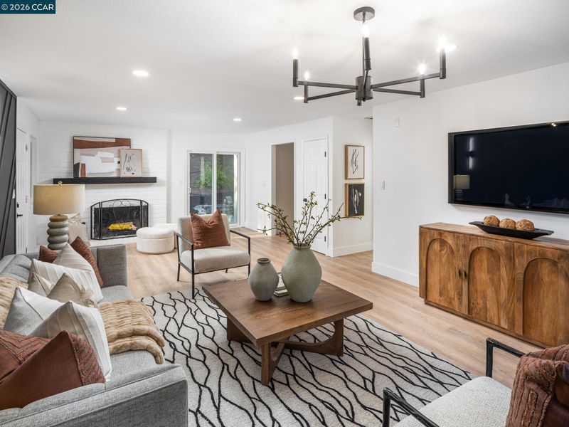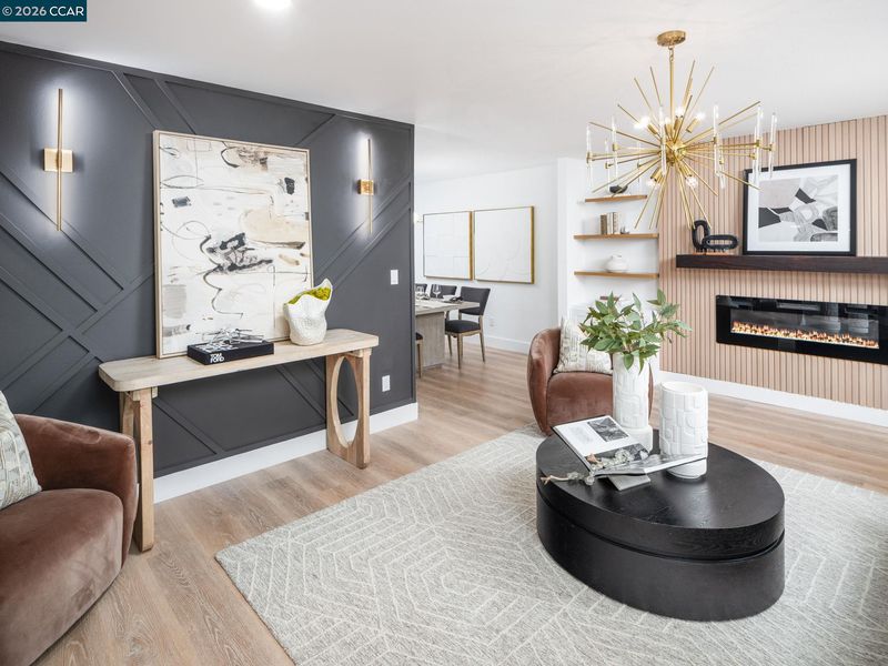 Dynamic Alamo contemporary design. All new interior. Stunning finishes. Light-filled 2788+/-SF. 2 levels on .47 acres on cul-de-sac. Captivating curb appeal. 5 bds. 3 bths. inclds 2-rm primary suite & main-level bdrm/office near full bthrm. Wood-grain luxury vinyl flrs. Recessed lighting. Stunning accent walls. Stylish chandeliers, sconces. Frosted glass-paneled double front door. Dual-pane windows. Fresh int/ext paint. Open flrplan. Living rm w/frpl, built-ins. Dining rm. Wine refrigerator. Galley-style kitchen. Quartz counters. Decorative tile bksplsh. Soft-close cabinets. Floating shelves. Brushed gold fixtures, pulls, pot filler. Bosch stainless appliances. Porcelain apron sink. Casual brkfst nook w/slider to bkyd. Walk-in pantry. Fabulous fam/game rm w/frpl, slider to bkyd. Bkyd sanctuary. Gentle slope dotted w/oaks, pines. Patios, synthetic turf, putting grn. Frt gardens. Primary suite w/balcony. Separate rm for gym, retreat, nursery. 3 reach-in closets. Spa-inspired en suite. Dual-sink vanity. Free-standing tub. Glass enclosed shwr. 3-car garage, epoxy flr. HVAC. Laundry rm w/counter, cabinets. Half-mile to Livorna Park. Near top-rated K-12 SRVUSD schls inclds less than 1.5 mi to Alamo Elementary. Near Alamo Plaza, downtown Danville, Mt. Diablo, walking trails.