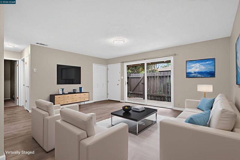 Welcome to Roundtree, Unit A. Set in a peaceful, park-like community, this charming 2-bedroom, 1-bath townhouse offers comfort, privacy, and everyday convenience. The gated front patio provides a quiet outdoor retreat, perfect for relaxing or entertaining. Inside, the open-concept layout connects the living, dining, and kitchen areas for easy living. A large sliding glass door brings in abundant natural light and opens directly to the private patio. Fresh interior paint throughout adds a clean, bright, and welcoming feel. Without neighbors on 3 sides or above, you'll appreciate the sense of privacy this home provides. Enjoy access to the community pool, beautifully maintained grounds, a covered carport conveniently located near the unit, and a nearby community laundry facility. Ideally situated close to Clayton Valley Shopping Center, restaurants, parks, and top-rated schools. This is a great opportunity to enjoy a vibrant community with the amenities that add to your comfort and convenience. Open House Sunday, Feb 15, 12pm - 2pm.