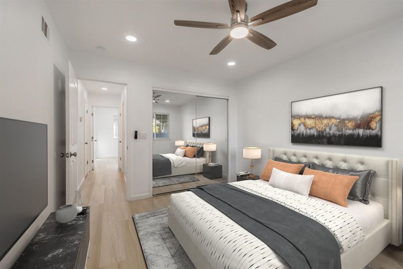 Rarely available! One-story end unit with a 2-car garage in a very desirable location | Beautiful, Bright & Comfortable | Nicely updated for immediate move in! | Kitchen ready to go with newer cabinets, New Quartz counters, New electric stove/hood, New refrigerator, New sink/faucet, newer dishwasher and Washer plus New Dryer | New laminate floors | Fresh interior paint | New cordless blinds and New vertical blinds on Patio door | New ceiling fans and recessed lighting | Spacious bathroom comes with New vanity, fixtures, lights, ceiling fan and shower door | Peaceful/private patio between home and garage for relaxation | 2nd patio off living rm | Front door opens to greenbelt | Close to Union Landing for shopping / restaurants/Century 25 theatre | EZ access to schools/parks/sports center/ BART/I880/Dumbarton & San Mateo bridges. Could not ask for more... Hurry... Don't Miss It!