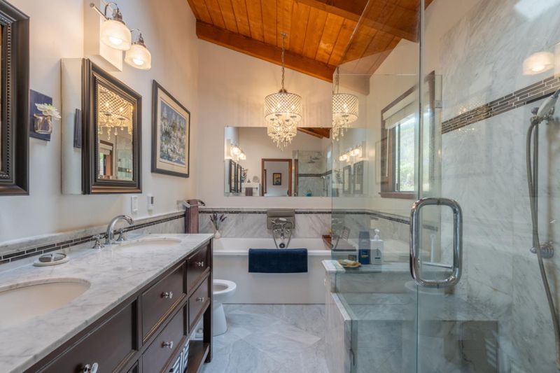 Bidet, Double Sinks, Granite, Marble, Stall Shower, Shower and Tub, Skylight, Tile, Tub, Updated Bath