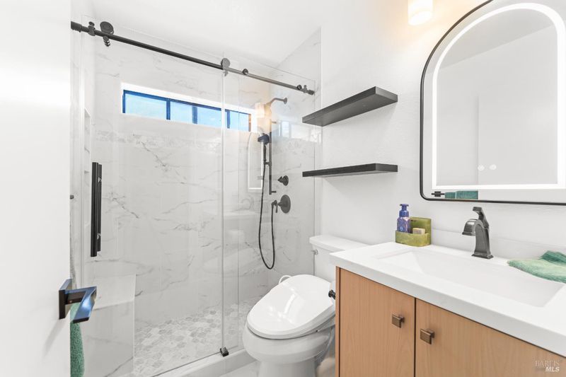 Welcome to 373 Clydesdale Drive - a beautifully updated, single-story home located in one of Vallejo's most established neighborhoods. This charming 3-bedroom, 2-bath residence blends timeless curb appeal with modern upgrades, offering the perfect combination of comfort, style, and functionality. Step inside to a bright, open layout with spacious living and dining areas designed for both everyday living and effortless entertaining. The kitchen flows seamlessly into the main living spaces, creating an inviting setting for gatherings. Throughout the home, new plantation shutters add both convenience and a polished designer touch. Unwind in the spacious primary suite, featuring a stunning, fully remodeled en-suite bathroom with high-end finishes throughout. Highlights include a freestanding soaking tub, dual vanities with LED backlit mirrors, and a luxurious walk-in rain shower accented by pebble stone flooring and contemporary tilework. The secondary bathroom has also been tastefully renovated with modern finishes, delivering a cohesive and elevated feel throughout the home. Outside, enjoy a private backyard retreat framed by mature landscaping - ideal for relaxing, hosting, or creating your own outdoor oasis. Additional features include central heating and air with smart thermostats, an extended driveway, and gated side yard access for added convenience. Do not miss this move-in-ready Vallejo gem- upgraded, stylish, and ready to welcome you home.