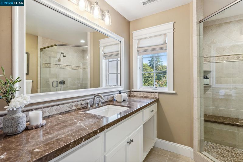 - Shower Over Tub, Stall Shower, Tile, Updated Baths, Double Sinks, Window