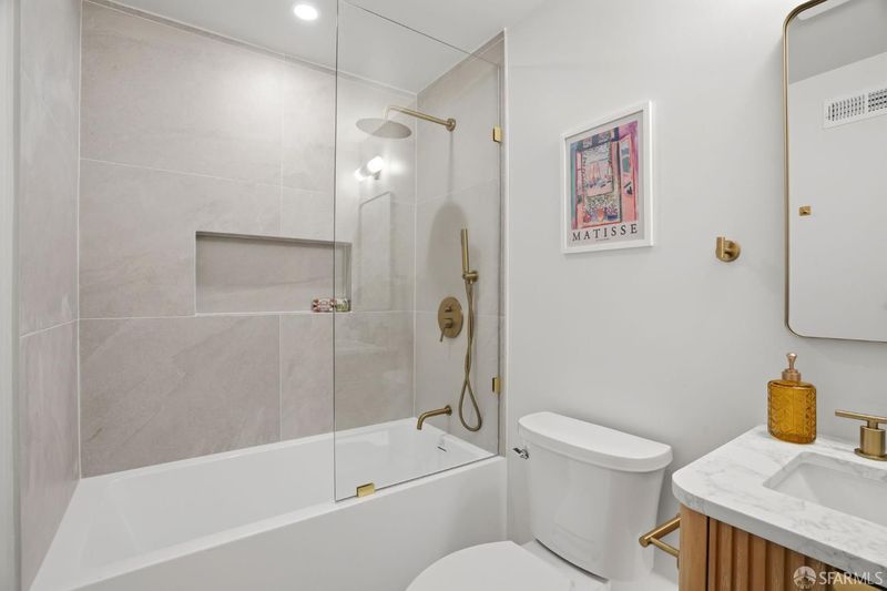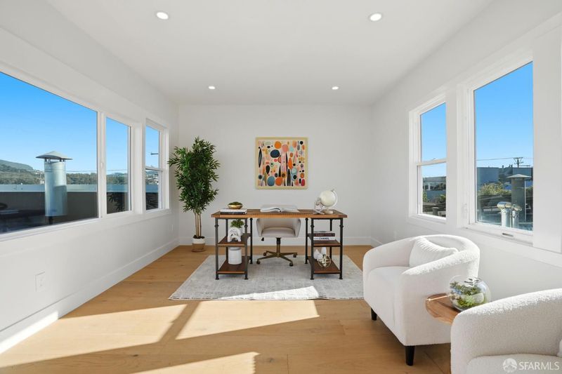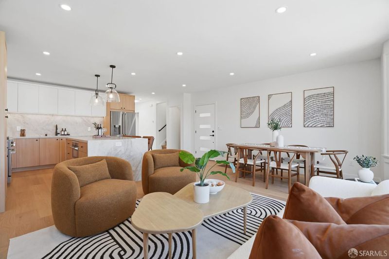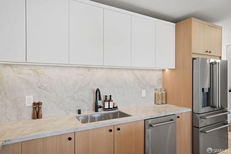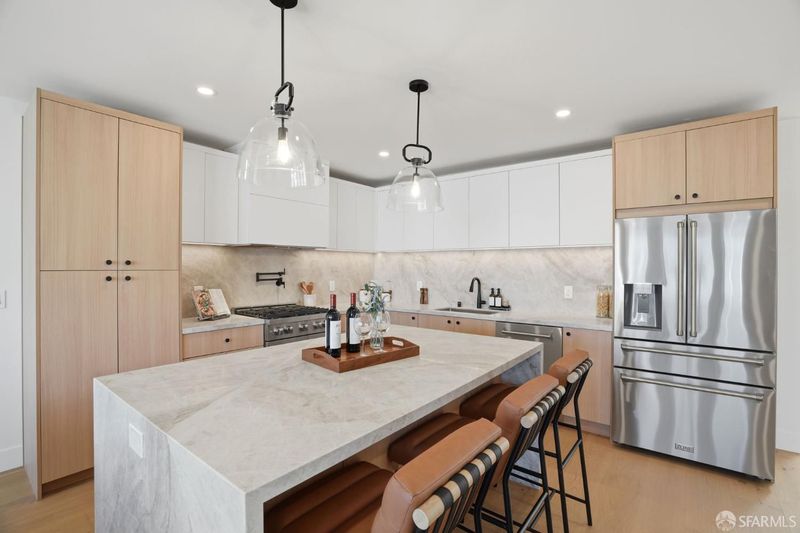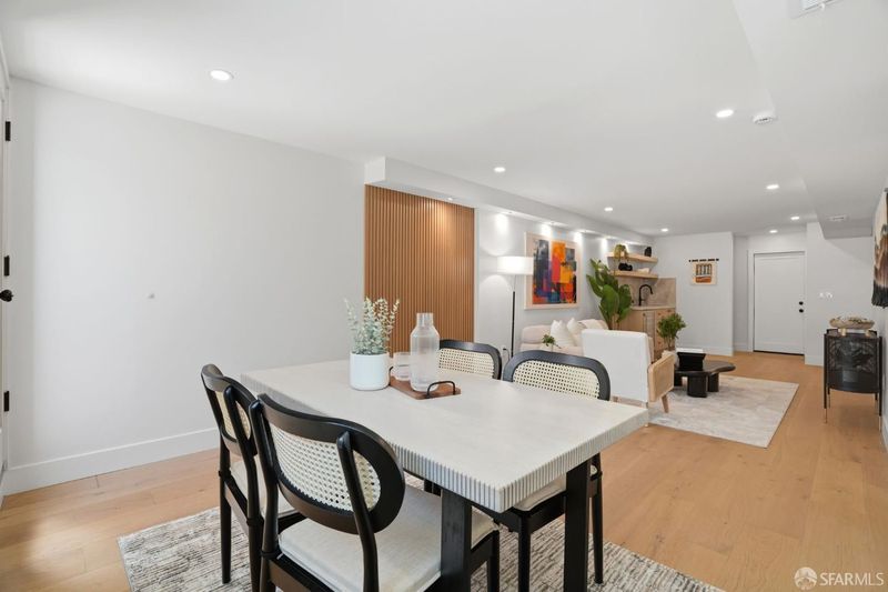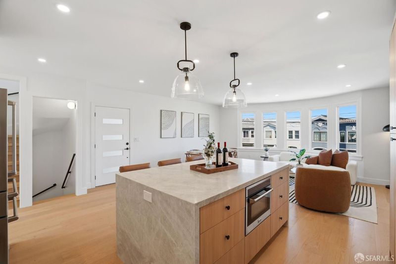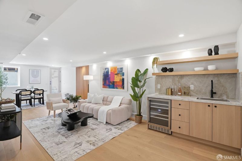 Extensively renovated Central Richmond District residence offering a highly functional, flexible floor plan and curated finishes throughout. The main level features three spacious bedrooms and three bathrooms, ideal for families and modern living. The open living and dining areas are anchored by a custom fireplace and flow seamlessly into a chef's kitchen with custom cabinetry, Taj Mahal quartzite countertops, ZLINE appliances, and wide-plank engineered wood flooring. The lower level features a private owner's suite with walk-in closet, wet bar, family room, and direct yard access, along with a powder room and dedicated laundry area, offering flexibility for guests or additional living space. The upper level offers a versatile room suitable as a bedroom, office, or media space, enjoying open city skyline views from Downtown SF to Sutro Tower. Additional highlights include designer finishes, porcelain tile baths, a beautifully landscaped backyard, and a spacious one-car garage with ample storage. Conveniently located near the Balboa Village corridor, neighborhood schools, parks, dining, and transit, this home blends thoughtful renovation, modern luxury, and classic San Francisco architecture.