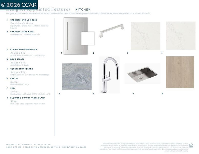 Discover luxury living in the heart of Silicon Valley. Offering new condos in Sunnyvale, Outlook at The Station features a sought-after location that puts you close to every want and convenience. Experience chic living with this stylish and modern home design. The stunning kitchen, features a sleek island with a breakfast bar, Energy Star KitchenAid stainless steel appliances, shaker style modern cabinets, quartz countertops enhanced by 10" elegant tile backsplash and full backsplash at cooktop. Adjacent is a bright casual dining area and great room with views to the lovely covered balcony beyond. The primary bedroom offers a desirable walk-in closet and is just steps from a full hall bath with a large shower, a dual-sink vanity, and a private water closet. Convenient reserved 1-car space with pre-wired EV charging. Enjoy the community clubhouse, Pool, indoor/outdoor lounge area, fireplace, dog wash, dog park, co-work mezzanine, entertainment lounge, fitness center, courtyard, playground, walking paths and expansive lawns. Outlook At The Station is located near Santana Row, Valley Fair Mall, Shopping Centers. Close to VTA Light Rail, Lawrence Caltrain and Bart. (photos not of actual home, for marketing only)