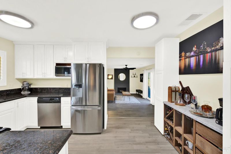 Single-story home with gorgeous accent touches and updates throughout. Modern LVT flooring, bright open-concept kitchen featuring granite countertops, new white cabinetry, and thoughtfully added extra cabinetry for optimal storage. New energy-efficient HVAC pump system. Beautiful granite vanity, tile flooring, and a clean contemporary look in the hall bath, plus a stylish primary en suite. Spacious backyard ready for entertaining with a beautifully built outdoor kitchen (sink, BBQ, fridge), large grassy area, and a nice awning for shade. Close to walking trails, parks, shopping, and schools. Come take a look at this rare find today!