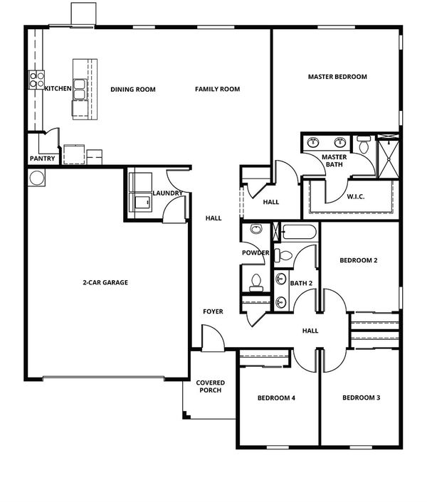 The Denair is a spacious four-bedroom home available in the Monte Vista Collection in Denair near Turlock. Designed for comfortable single-level living, this thoughtfully crafted floor plan features an open-concept layout that seamlessly connects the family room, kitchen, dining area, and breakfast barcreating an inviting space for both everyday living and entertaining. The kitchen is a true centerpiece, highlighted by a large quartz island with an integrated sink that looks out over the open living room, along with energy-efficient appliances and sleek modern finishes. A convenient powder room provides added comfort for guests, while a spacious laundry room enhances everyday functionality. The oversized primary suite offers a private retreat with a generous walk-in closet and a beautiful primary bathroom featuring double sinks. With four well-designed bedrooms and a layout that balances style and home-owner convenience, come see why this home is a place where the whole family can relax and feel right at home.