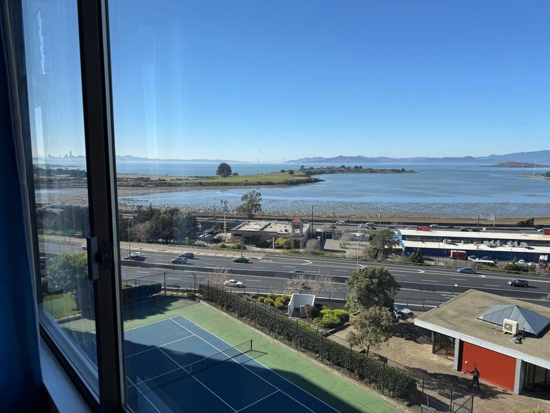 This is a fabulous corner unit with spectacular bay views from every window! The original extended living room means approx 1150 sq. Ft of living space. Primary Bedroom has an extra window with a bay view. Lovingly restored with improvements to the bathrooms, kitchen, floors, cieling retextured and so much more. A must see: Gateview's most popular floor plan. Albany's highly acclaimed schools, restuarants, and shopping near by. Close to public transportation, the Pacific East Mall, Pierce St. Park and Solano Avenue shopping.