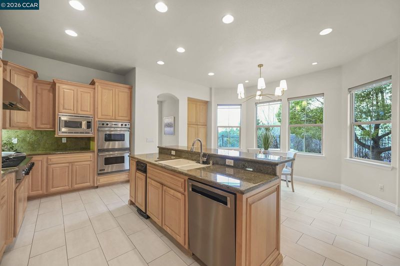 - Dishwasher, Double Oven, Oven, Refrigerator, Gas Water Heater, Stone Counters, Eat-in Kitchen, Kitchen Island, Oven Built-in, Updated Kitchen