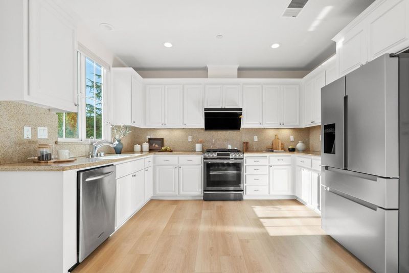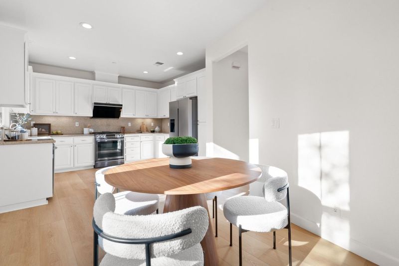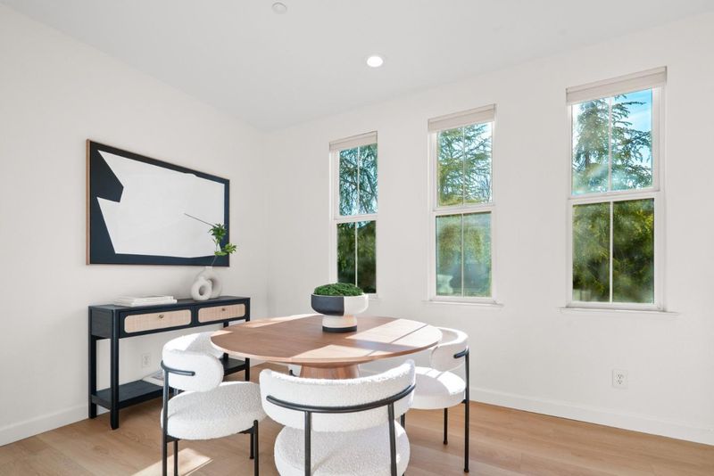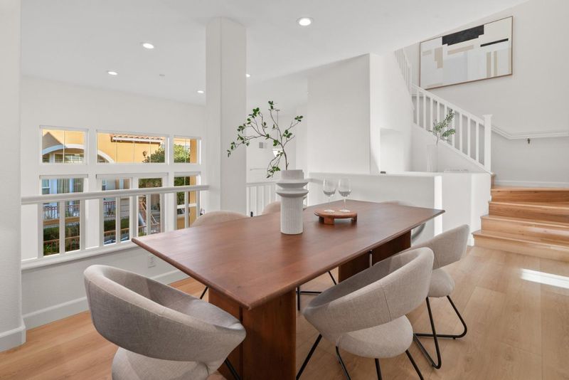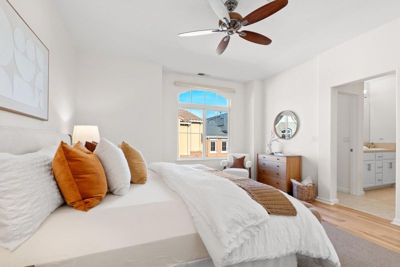 Quiet north west facing location! Thoughtfully designed to maximize natural light, this three-bedroom townhome offers an airy, multi-level layout that feels right the moment you walk in. The inviting living space flows seamlessly into an elevated dining area, creating a sophisticated sense of openness perfect for entertaining. A surprisingly spacious kitchen features a dedicated breakfast nook and enough footprint to easily add a custom center island. Retreat upstairs to a primary suite defined by high ceilings and a luxurious bathroom with a deep soaking tub and separate shower. Modern life is simplified with a fully integrated Google Home system, including smart locks, a Ring doorbell, and a connected thermostat. Situated in the heart of Rivermark, you are just minutes from vibrant shopping at Rivermark Plaza and a quick commute to major tech campuses.