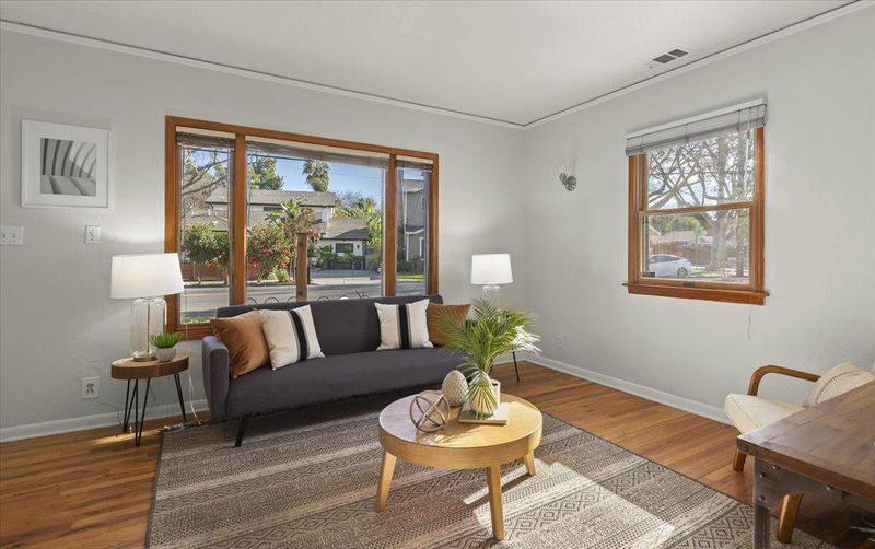 This stylish single-story home blends timeless vintage charm with modern comfort in a prime Silicon Valley location just moments from Santa Clara University, the Rose Garden, and The Alamedas vibrant shopping and dining scene. Rich in character and curb appeal, a welcoming front entry opens to light-filled interiors featuring original hardwood floors, classic moldings, and thoughtfully preserved finishes that add warmth and personality throughout. Central heating and air conditioning provide year-round comfort, while the functional floor plan offers easy everyday living and effortless entertaining. Step outside to a beautifully landscaped, private backyardperfect for relaxing, gardening, or outdoor dinning. Additional highlights include a one-car garage and inviting front yard that enhances the homes storybook presence. Combining charm, convenience, and an unbeatable location, this home offers the ideal Silicon Valley lifestyle just minutes from parks, schools, dining, and major commute routes.