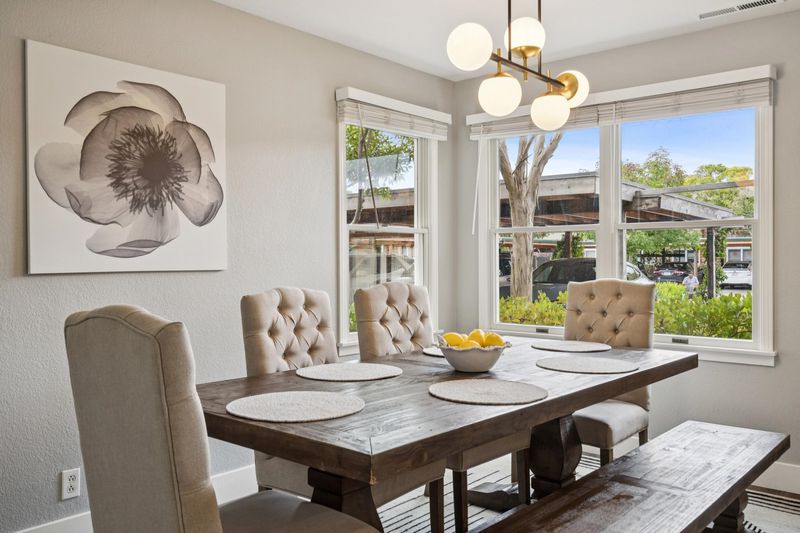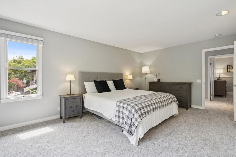 Discover contemporary living in this beautifully updated two-story condo in the gated community of Centre Court on Harbor Bay Isle. The first floor features a bright, open-concept design with seamless flow between the living, dining and kitchen areas. A functional gas fireplace anchors the spacious living room and opens to a private patio, while recessed lighting and dark laminate floors create a warm yet contemporary feel. The updated kitchen includes abundant white shaker cabinetry, sleek black countertops, a peninsula and stainless steel appliances, including a gas range, dishwasher, and refrigerator. A dining area with large windows overlooks the front of the property. For added convenience, this level also offers a half bathroom, a laundry closet and multiple closets offering ample storage or space for a pantry. Upstairs, the primary bedroom features a custom-organized closet with mirrored doors and an en-suite bath, complete with a quartz vanity and a glass-enclosed shower. Two additional bedrooms and a hall bath with a shower-over-tub complete the second floor. Conveniently close to the scenic Harbor Bay Trail, SF Ferry, shopping, Chuck Corica Golf Course and local parks. Open House Sun 2/15 2-4pm.