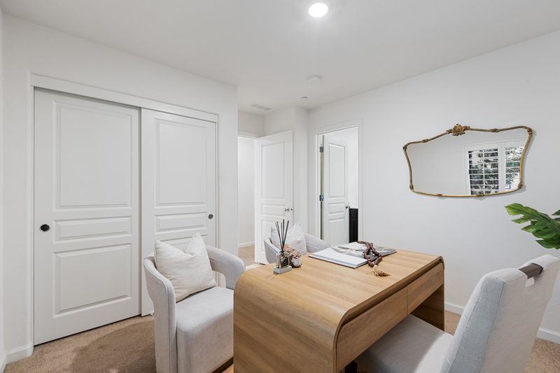 Modern townhouse in the desirable Bishops Ridge community. Built in 2019, this 4-bedroom, 3.5-bath home offers approx. 1,773 sq ft of well-designed living space. The first-floor bedroom with en-suite bath is ideal for guests, an office, or multi-generational living. The gourmet kitchen features quartz countertops, a center island, stainless steel appliances, and a gas range, opening to a bright living and dining area with high ceilings, abundant natural light, and a private balcony. Upstairs includes a spacious primary suite with a walk-in closet, dual vanity, and walk-in shower, plus two additional bedrooms and a full bath. Laundry is conveniently located on the main living level. Smart home features include pre-wired EV charging, a tankless water heater, and central heat/AC. Two-car garage and guest parking. Close to Lake Chabot, trails, I-580, BART, shopping, dining, and Yu Ming Charter School just one block away.