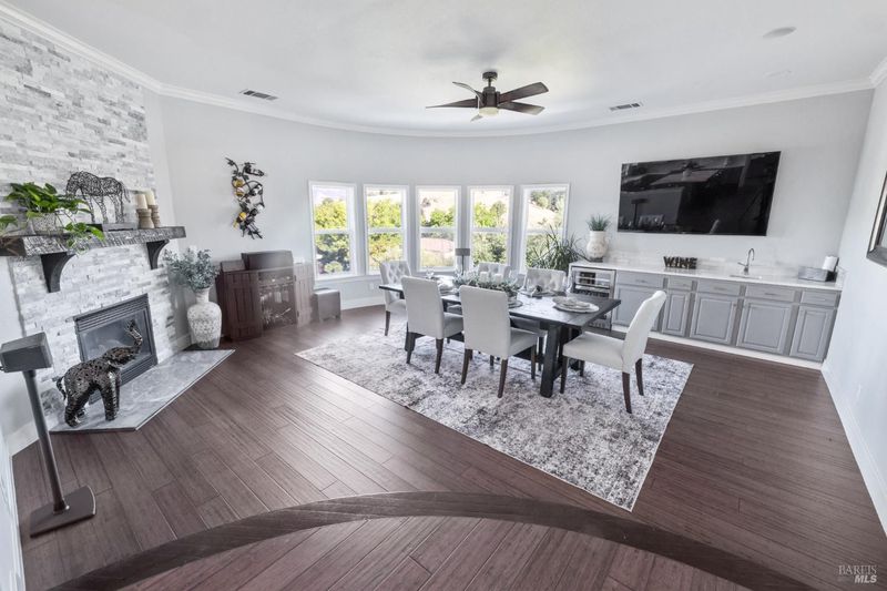 - Dining Room, Family Room, Gas Log, Primary Bedroom