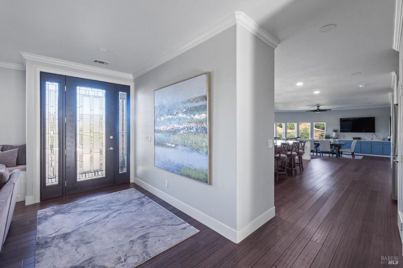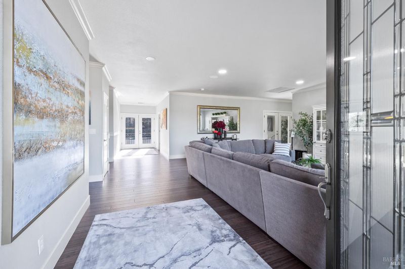 Welcome to North Vine Estates, a coveted gated community known for natural beauty, spacious lots, panoramic views, and a convenient proximity to downtown and great schools. This stunning single-level home offers 3,324 sq ft of beautifully updated living space with garage below. The exquisitely remodeled kitchen features shaker cabinets, a six-burner gas range with hood, quartz countertops, subway tile backsplash, and a large island with pendulum lighting. A picture window frames breathtaking hilltop views, while French doors lead to a patioperfect for enjoying sunsets. Entertain effortlessly in the open-concept kitchen/dining roon with curved window wall, fireplace, and wet bar. The great room includes a fireplace and cozy window seat. Engineered wood flooring flows throughout. A covered patio off the great room is perfect for hot summer days when enjoying the swimming pool with its waterfalls and custom lighting, The luxurious primary suite boasts a fireplace, two large closets, and spa-like bath. Additional highlights include a guest suite with bathroom, two additional bedrooms, solar panels, a dumbwaiter from the garage, and room to grow on a -acre lot. An extended driveway offers additional parking and an entrance to the home at the main level.