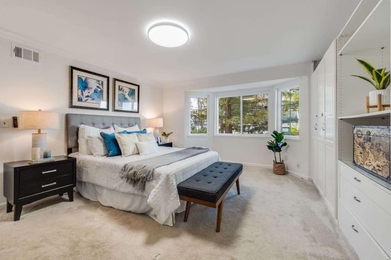 Bright end unit townhome convenient yet private. 2 bedrooms and 2.5 bathrooms, end-unit townhome with 1,232 sq ft of thoughtfully designed living space. Enjoy a beautifully updated kitchen featuring quartz countertops, mosaic backsplash, stainless steel appliances, and updated cabinetry. The dining area opens to a private balcony and home provides a private outdoor patio perfect for relaxing or entertaining. Interior highlights include Brazilians cherry hardwood floors throughout and plush carpets in the bedrooms. Spacious primary suite features an oversized closet with custom shelving. Updated bathrooms with quartz countertops, updated cabinetry, porcelain tiled floors and showers. Other upgrades include central A/C and heating and additional storage. HOA offers pool, hot tub, clubhouse, garbage, and 24-hour guest parking. Enjoy 3 guest spots behind the home and ample street parking. Located just a short walk to vibrant downtown Mountain View, this home offers unbeatable access to Highways 237, 85, 101, 280, and Central Expressway for easy commuting. Quick drive or bike ride to Google, Microsoft, Linkedin, and many more tech companies! Don't miss this one of a kind home!