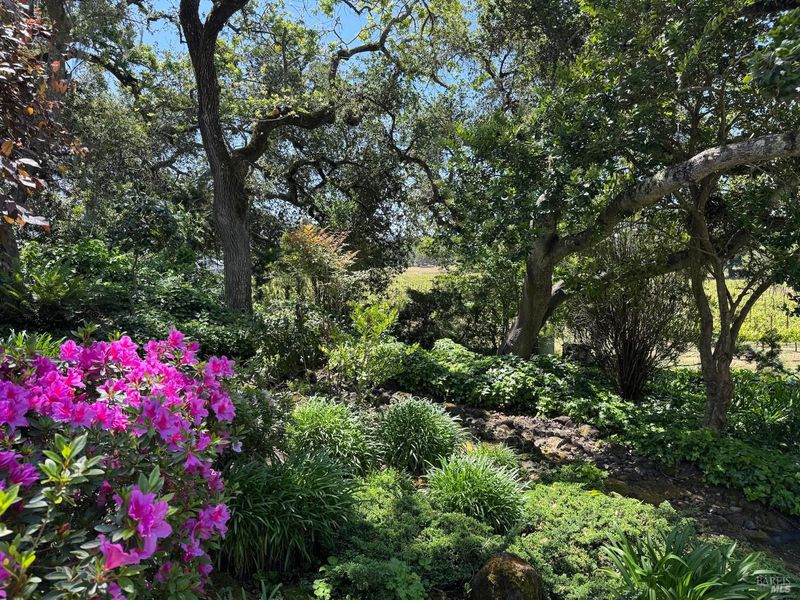 Gracious Single Level Wine Country Estate Hom in Bennett Valley. 7 acres include 5 acres of Pinot Noir grapes under management. Vines have produced award winning wines. Spacious floor plan of 4207+/- sqft, 4bd/3.5 ba in the main house, plus 1 bd/1 bath guest house. Park-like grounds with views of the surrounding hills and Bennett Ridge. Features include in-ground pool, detached 3 car garage w/storage and temperature controlled wine room, detached guest house, large steel-beamed barn w/loft, built to commercial loading specs. Extensive upgrades include Spanish Tile roof, gleaming hardwood floors, high quality doors and windows, beveled glass pocket doors between the main rooms, a large well appointed cook's kitchen, butler's pantry, and a generous double sided primary bathroom suite. Two fireplaces w/stone facades in dining room (gas) and family room (wood burning insert). High producing well, good water quality. Dramatic old oaks, 20 olive trees, crepe myrtles, roses, azaleas, rhododendrons, and fruit trees. Flowers abound! Peaceful views of hills and gardens. Enjoy quiet tranquility just five minutes from town. Take the online tour of the house: 6410bennettvalleyrd.com